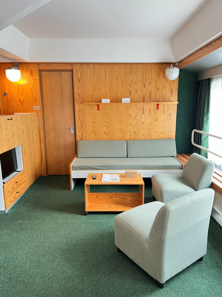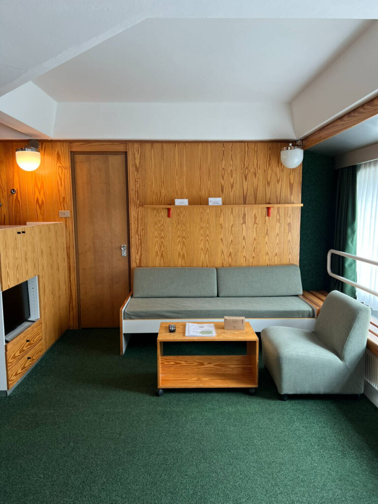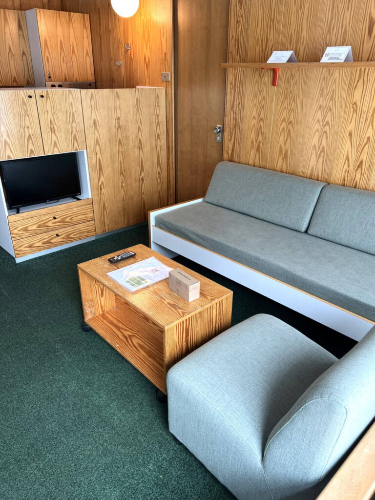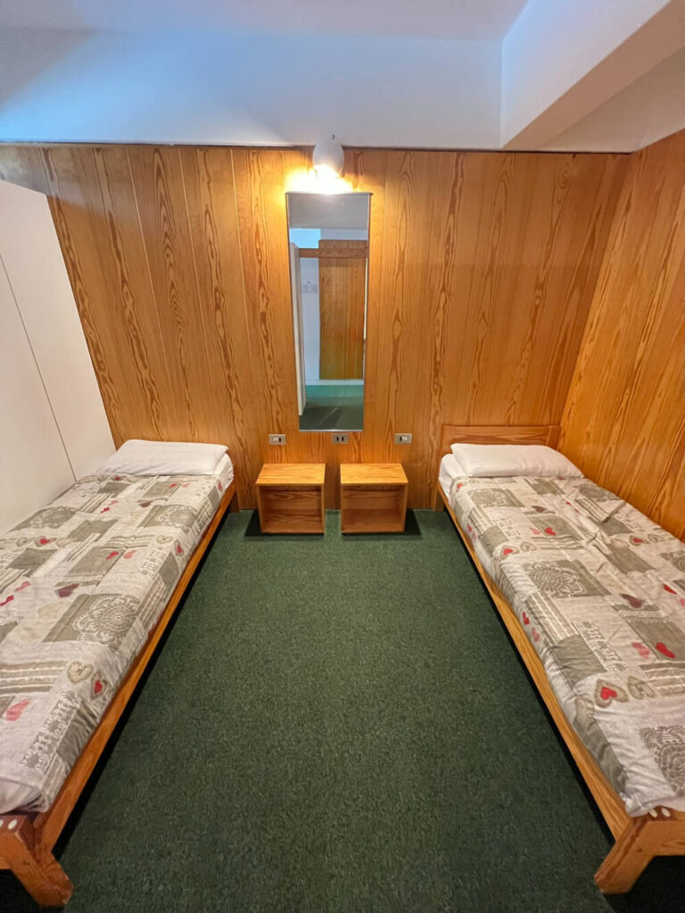 Il Trilocale Standard, con una superficie di circa 50mq, è pratico e funzionale ed ha la pavimentazione in moquette. E’ composto da tre ambienti, un soggiorno con un divano letto singolo e TV , due stanze separate e una piccola cucina completamente attrezzata per un soggiorno in piena autonomia.