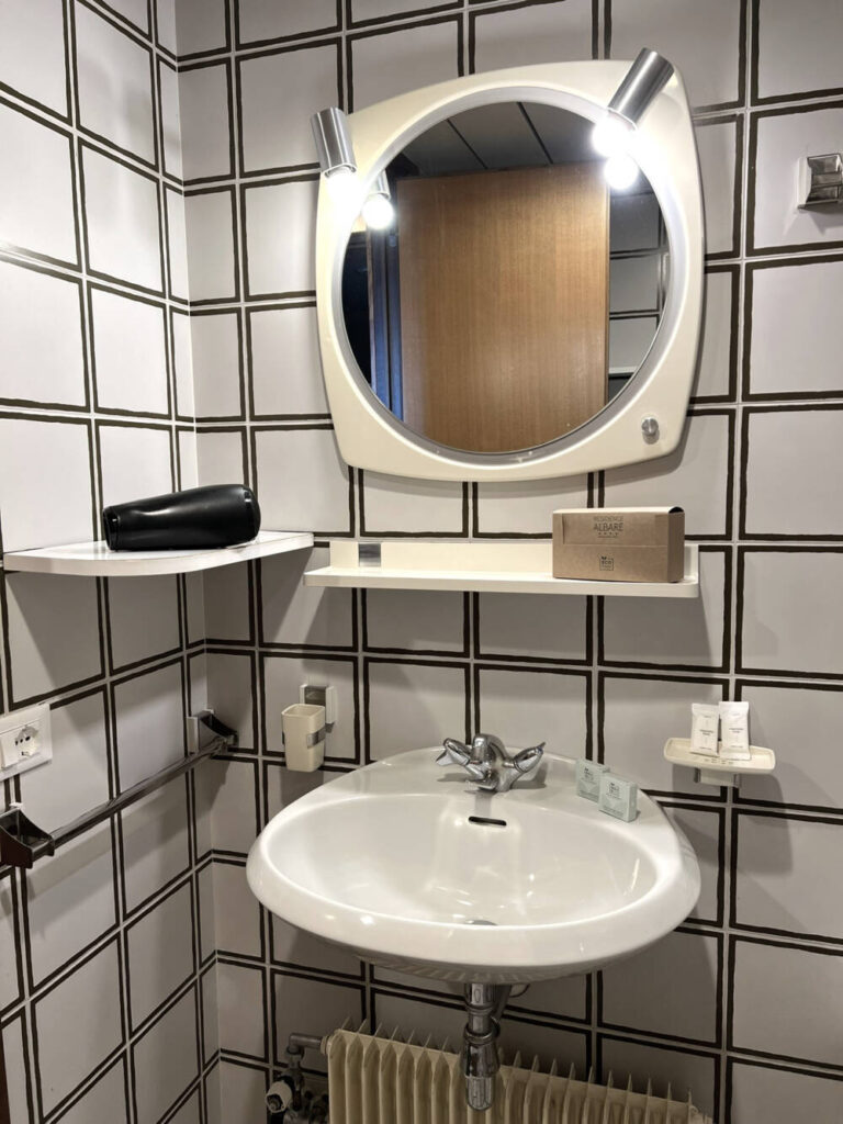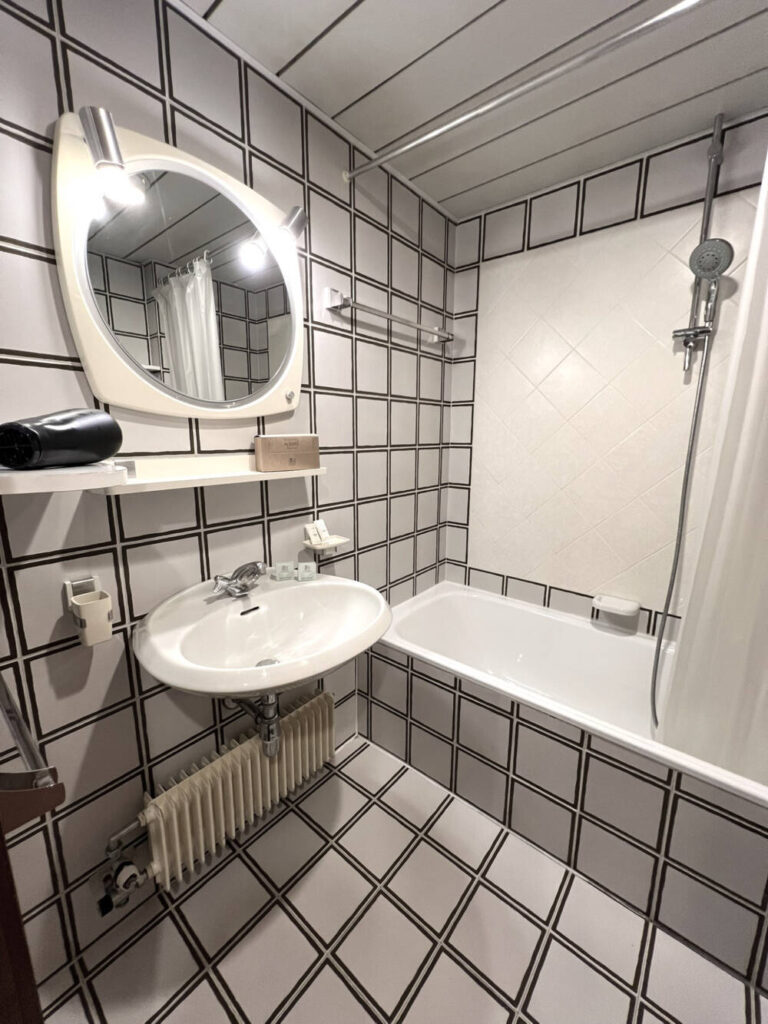 Nel bagno privato, dotato di vasca con tenda doccia, troverete l’asciugacapelli standard non da viaggio.
